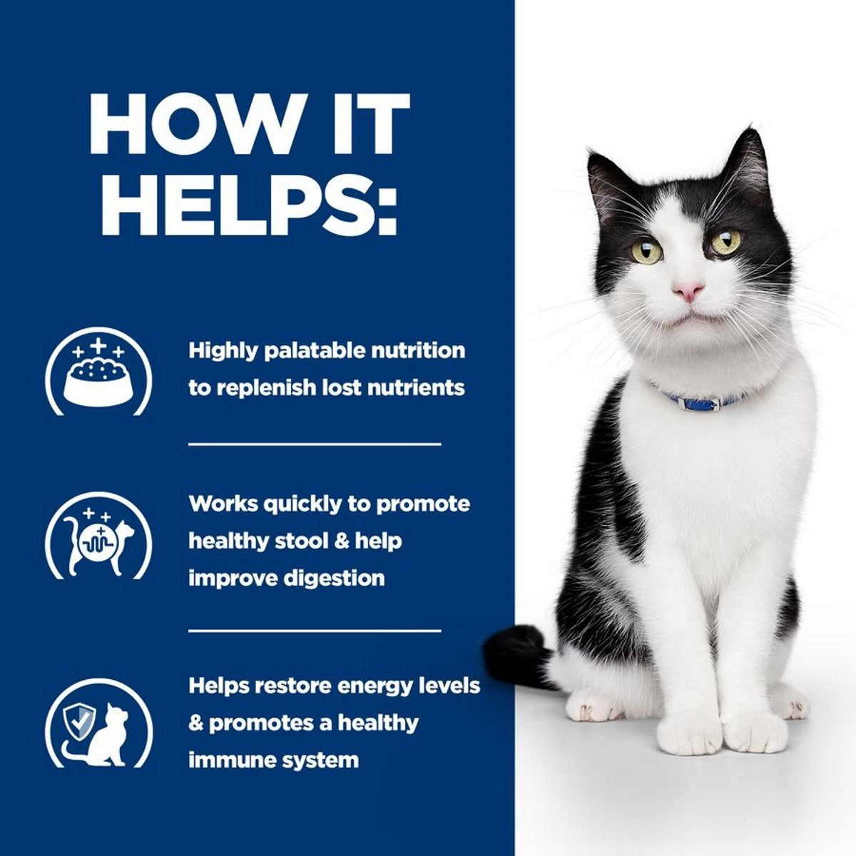 Hills I/D Digestive Care also has a low-fat content, and a high content of electrolytes and essential antioxidants to support your cat’s overall health.